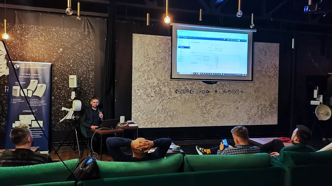 Druga część warsztatu mówiła o wewnętrznych sieciach WIFI. Sebastian zrobił pokaz konfiguracji w oparciu o switche cnMatrix oraz punkt dostępowy XV2-21X. Ilość pytań podczas części warsztatowej bardzo pozytywnie nas zaskoczyła. Czuliśmy, że nasi goście nie byli tutaj z przypadku tylko przyjechali po wiedzę.