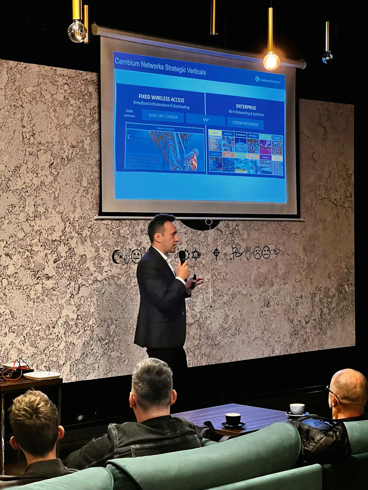 Nasz mini-event był jednodniowy oraz darmowy. Rozpoczęliśmy o 10:00 krótko prezentując historię firmy Batna i portfolio produktowe, które mamy w stałej sprzedaży. O 10:30 płynnie przeszliśmy do sedna, czyli marki Cambium Networks. Sylwester Chojnacki, który jest Dyrektorem Sprzedaży m.in. w Polsce przedstawił nam pełne portfolio produktów Cambium, które nazywamy rozwiązaniem ONE NETWORK. Prezentacja była wyjątkowo krótka i treściwa bo zamysł imprezy od samego początku był skierowany na zagadnienia techniczne.