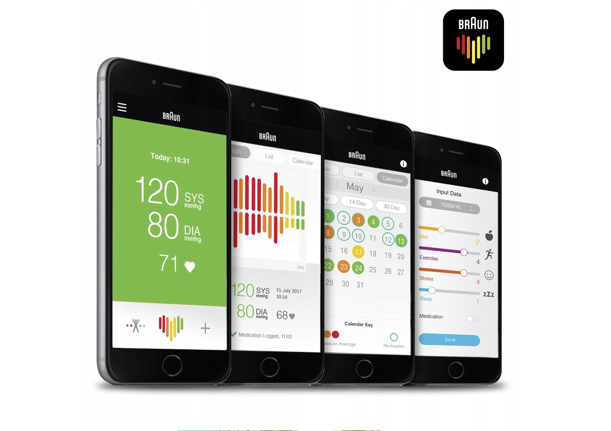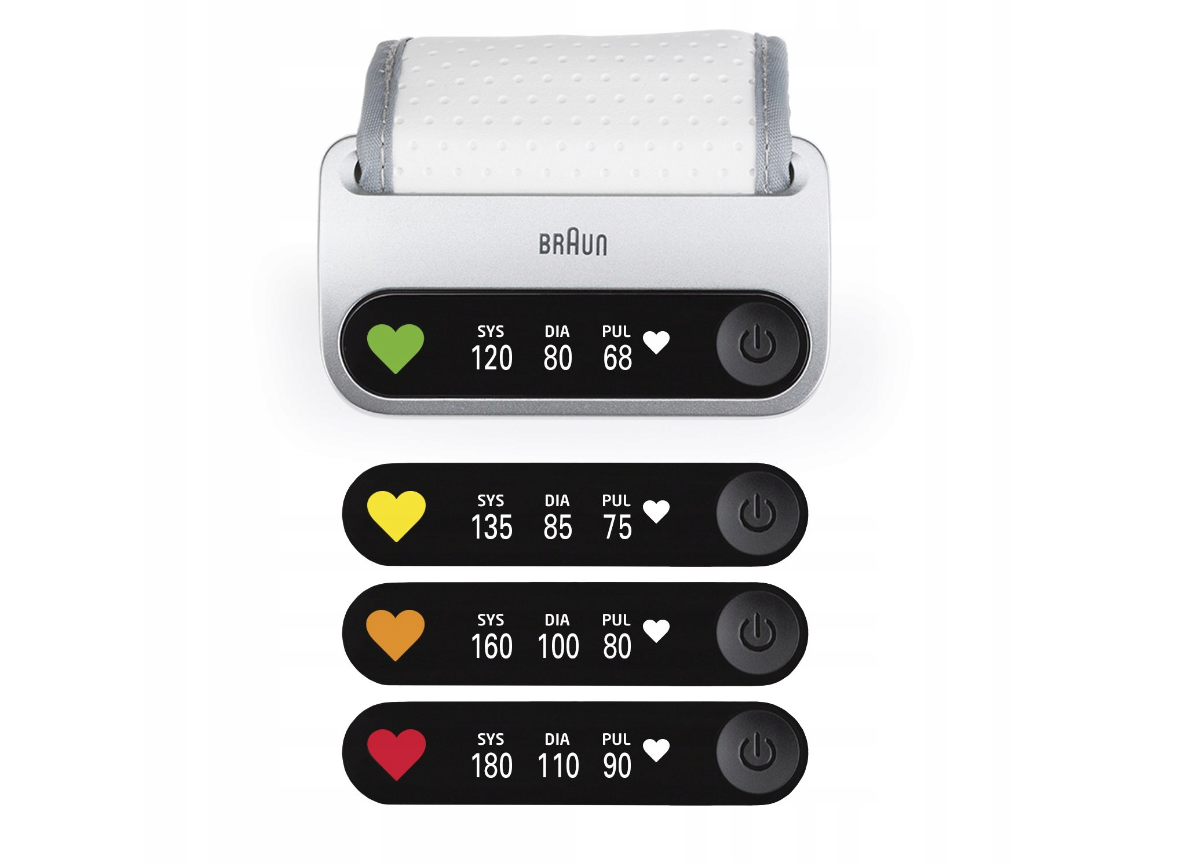 Nowy ciśnieniomierz Braun iCheck® 7 oferuje inteligentne i szybkie odczyty ciśnienia krwi i bezproblemowo synchronizuje się z aplikacją Zdrowe Serce marki Braun, aby pozwolić Ci na śledzenie swoich postępów na przestrzeni czasu. Wskaźnik poziomu ciśnienia krwi zgodny z wytycznymi WHO (Światowej Organizacji Zdrowia), który ułatwia kontrolowanie pomiarów w prosty sposób, symbolicznie pokazując na jakim poziomie jest ciśnienie krwi, co daje natychmiastową interpretacje danych.