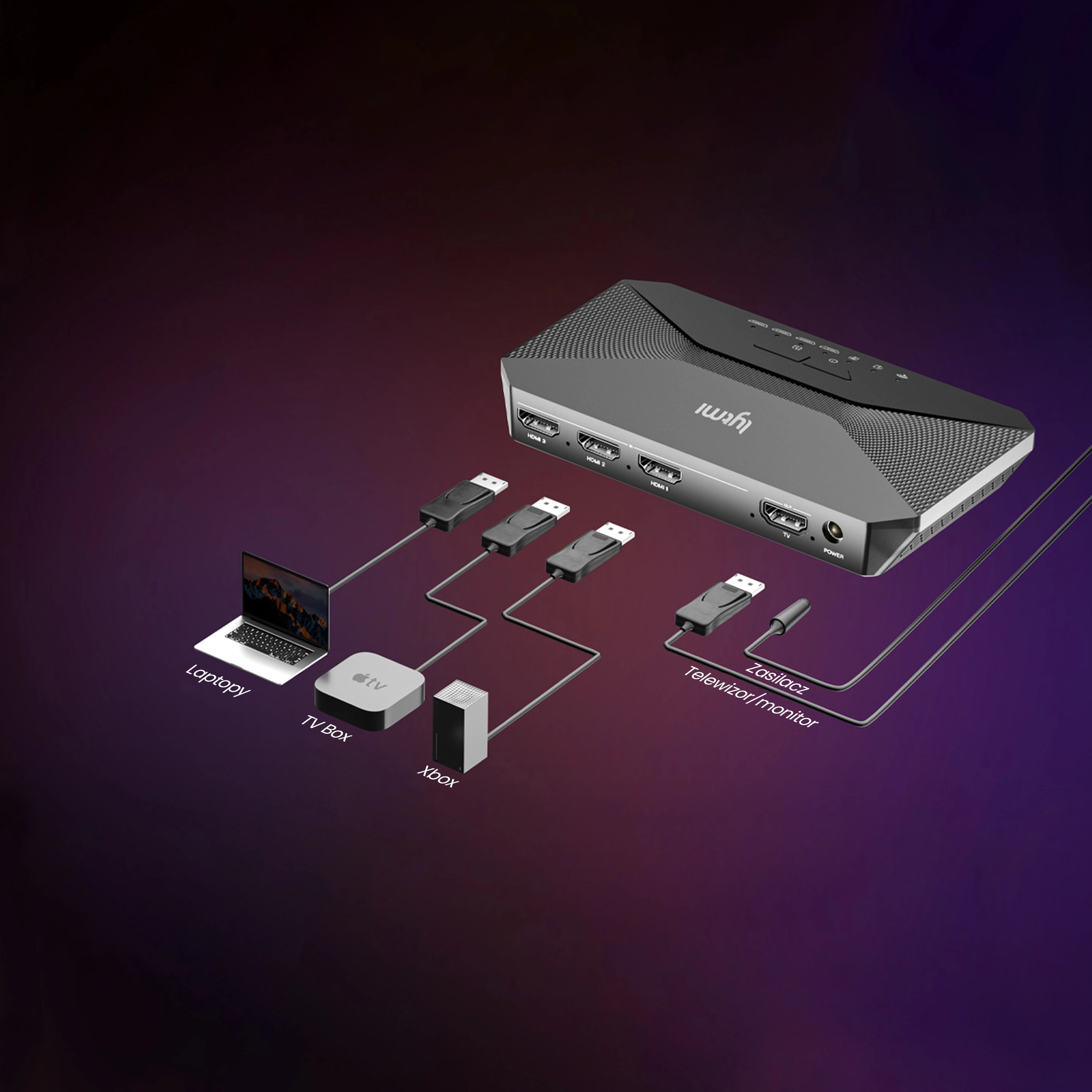 Neo Box 3 pozwala na podłączenie różnych urządzeń oraz obsługuje komunikację bezprzewodową przez Wi-Fi na częstotliwości 2,4 GHz, co zapewnia stabilne połączenie i wygodne sterowanie. HDMI 2.1 zapewnia wysoką jakość obrazu i dźwięku. Możesz cieszyć się niesamowitymi rozdzielczościami wideo do 8K 60 Hz, 4K 120 Hz i 1080P 120 Hz, a także obsługą HDR 10 i Dolby Vision, aby uzyskać żywy i realistyczny obraz. Trzy porty wejściowe HDMI 2.1 umożliwiają sparowanie ulubionych urządzeń do strumieniowego przesyłania multimediów HDMI, takich jak TV Stick, Apple TV, Xbox i PlayStation.
