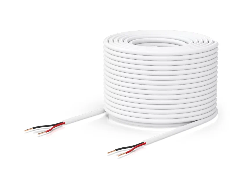 Wysokiej jakości 2-żyłowy kabel do systemu UniFi Access od Ubiquiti Inc. składa się z jednej pary żył, które są otoczone białą powłoką wykonaną z termoplastycznego elastomeru. Ten materiał jest nie tylko elastyczny, ale również miękki i przyjemny w dotyku, co sprawia, że instalacja jest łatwa i wygodna. Każda żyła ma przekrój 18AWG i jest zdolna do przenoszenia 2A przy 36V DC, co zapewnia stabilność i niezawodność działania.