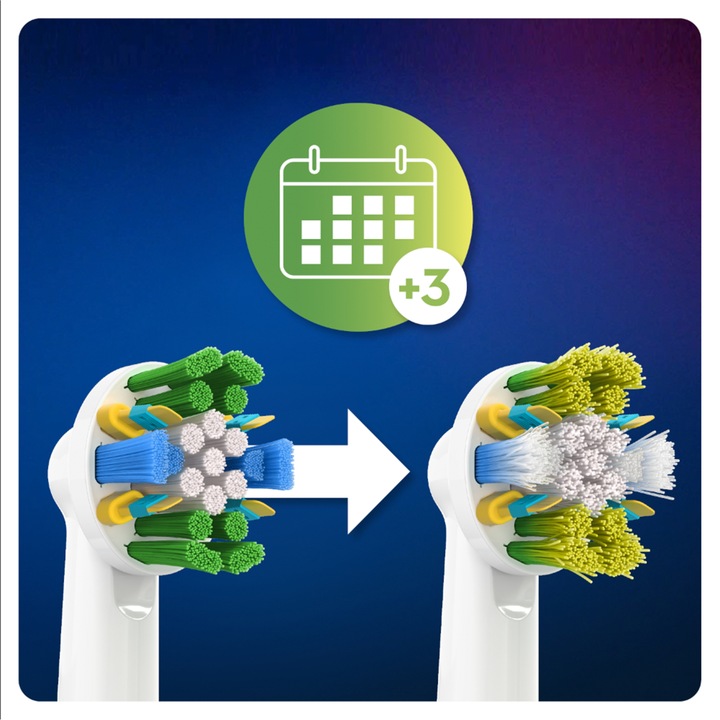 Końcówki Oral-B FlossAction Clean Maximiser usuwają nawet do 100% więcej płytki nazębnej niż zwykła szczoteczka manualna.