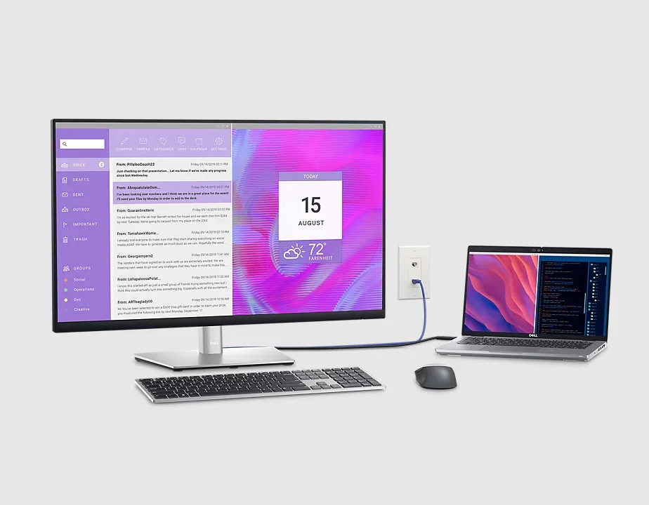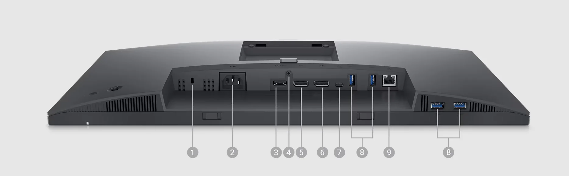 Monitor Dell P2723DE posiada wiele różnych portów, w tym wejście i wyjście DisplayPort, HDMI, USB-C oraz cztery szybkie porty USB o przepustowości 5 Gb/s, co umożliwia łatwe podłączanie różnych urządzeń. Może on również służyć jako centrum produktywności dzięki portowi RJ45 do przewodowego połączenia z siecią Ethernet oraz portowi USB-C, który może dostarczać zasilanie o mocy do 90 W.