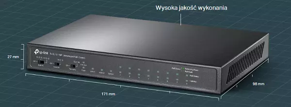 Switch biurkowy TP-Link TL-SL1311MP to przełącznik z 8 portami 10/100Mb/s i 3 portami gigabitowymi, który nie wymaga konfiguracji. Dzięki 8 portom PoE (Power over Ethernet) może automatycznie wykrywać i zasilać wszystkie urządzenia zasilane (PD) zgodne ze standardem IEEE 802.3af/at. W takiej sytuacji energia elektryczna jest przesyłana wraz z danymi jednym kablem, co umożliwia rozszerzenie sieci w miejscach, w których nie ma linii energetycznych ani gniazdek, a także w miejscach, w których chcemy zamocować urządzenia takie jak punkty dostępowe, kamery, telefony itp.