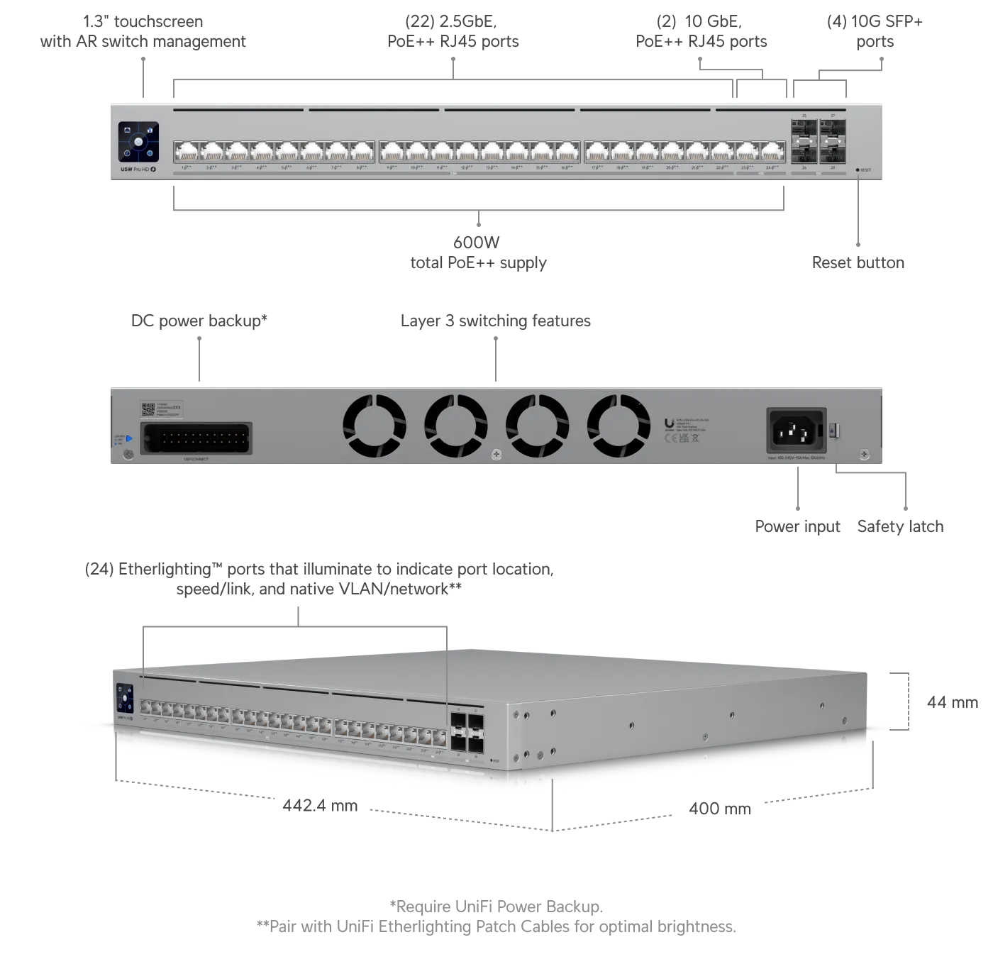 Ubiquiti USW-PRO-HD-24-POE-EU | Switch | Etherlighting, 2x 10GbE PoE++, 22x 2.5GbE PoE++, 4x 10G SFP+