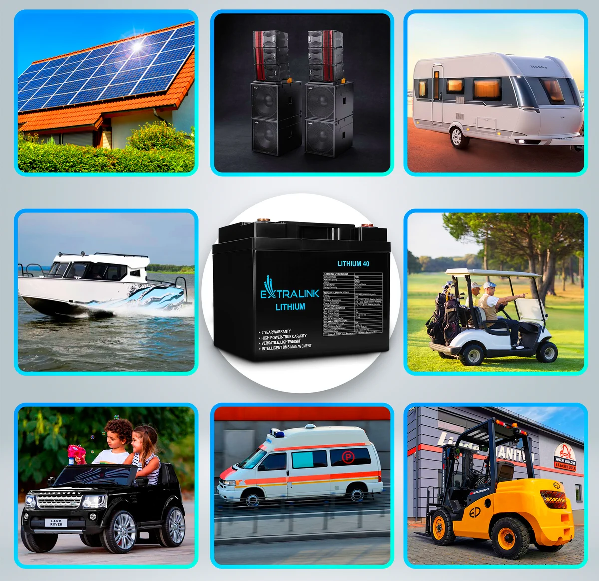 W porównaniu z tradycyjnymi rozwiązaniami opartymi na akumulatorach wykonanymi w innych technologiach akumulatory litowo-żelazowo-fosforanowe LiFePO4 Extralink mają wiele zalet: dłuższa żywotność, brak konieczności konserwacji, wyjątkowe bezpieczeństwo, lekkość, lepsza efektywność rozładowania i ładowania. W celu przedłużenia żywotności akumulatorów LiFePO4 Extralink nie wymaga się aktywnej konserwacji. Ponadto te akumulatory nie wykazują efektu pamięci i można je przechowywać przez dłuższy czas ze względu na niski poziom samorozładowania (mniej niż 3% miesięcznie).