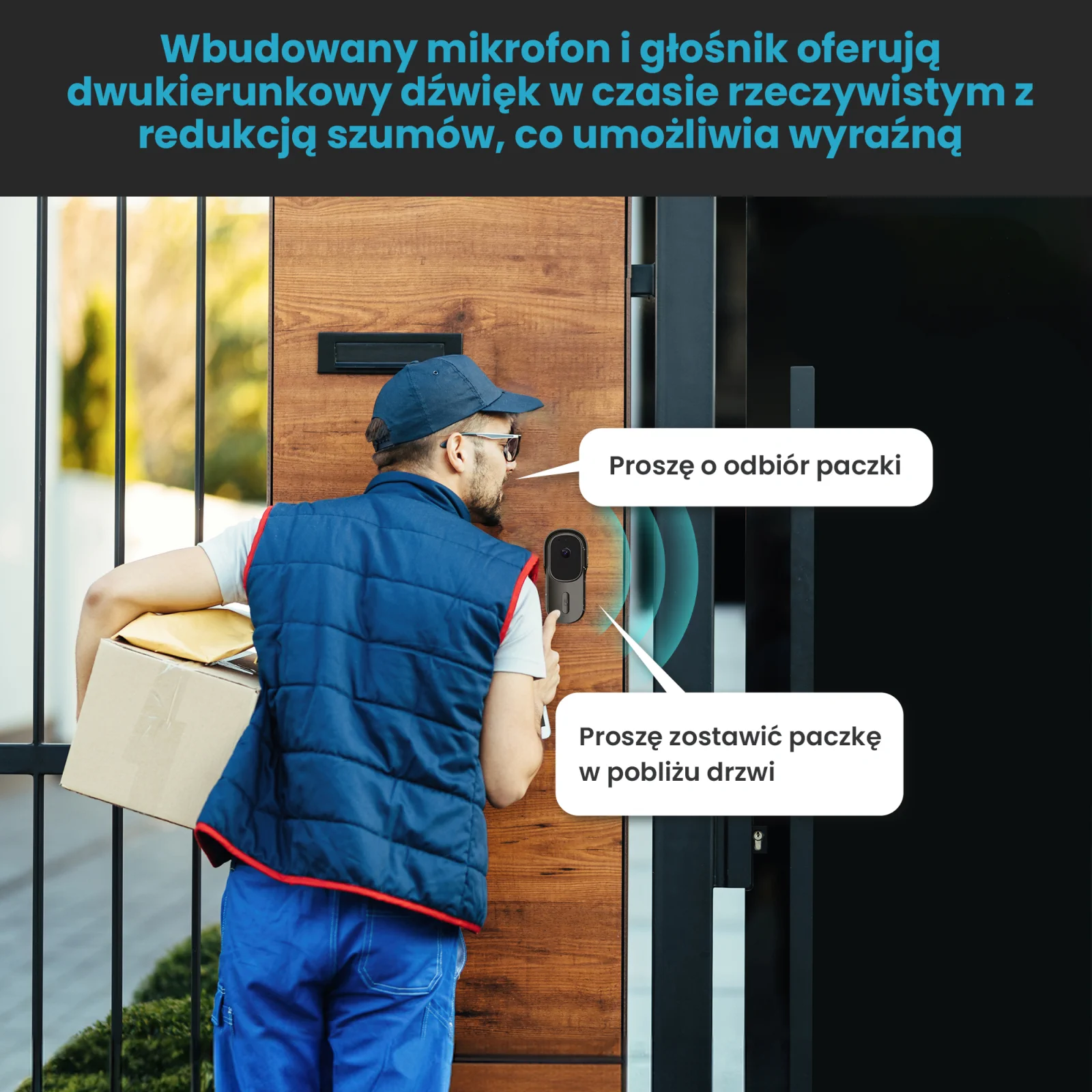 Extralink Smartlife wyposażony jest w 5-megapikselową kamerę o rozdzielczości 1440P Full HD, która zapewnia wyraźny obraz w każdych warunkach. Automatyczne przełączanie trybu dziennego i nocnego gwarantuje krystalicznie czysty obraz o każdej porze dnia. Wbudowany mikrofon i głośnik oferują dwukierunkowy dźwięk w czasie rzeczywistym z redukcją szumów, co umożliwia wyraźną komunikację z odwiedzającymi.