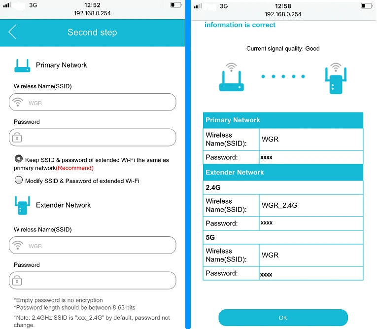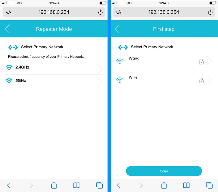 Em seguida, escolha o Modo Repetidor e a frequência. No passo seguinte, ligamo-nos à nossa rede Wi-FI.