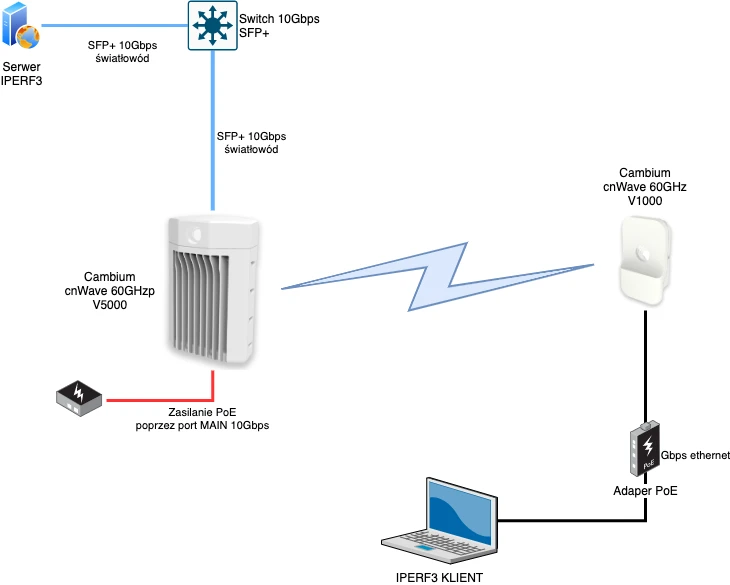As soluções Cambium Networks cnWave V5000, V3000 ( antena) e V1000 parecem ser uma boa alternativa - uma simples proposta de radiolink em numerosas implementações. Durante os testes, observamos alguns problemas que devem ser considerados. Acontece que a fonte de alimentação de 60 W pode ser insuficiente para usar a porta de saída Ethernet PoE no dispositivo cnWave. Em tal situação, o fabricante recomenda uma fonte de alimentação mais potente, mesmo de 100W. Um pequeno inconveniente é também a profundidade da tomada do SFP . As inserções comuns podem se esconder profundamente no soquete, o que torna mais difícil não só remover a inserção, mas também desatarraxar o patchcord de fibra óptica. Fabricante