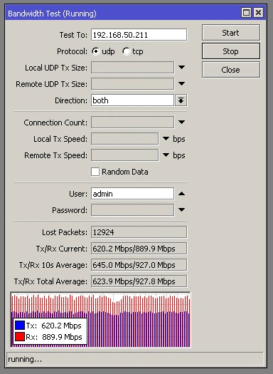 No entanto, não foi possível inverter os resultados de passagem, na direcção de V5000 para V1000 a velocidade obtida foi de 600-650 Mbps para tráfego bidireccional UDP. Na outra direção, ou seja, enviando da V1000 para a V5000, obtivemos o rendimento total da porta 1G, que está equipada com a V1000 e é uma limitação para a transferência nestas condições de teste.