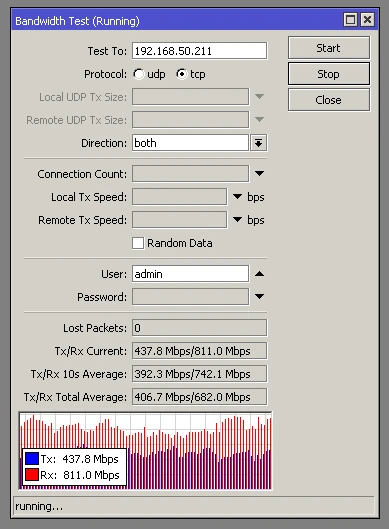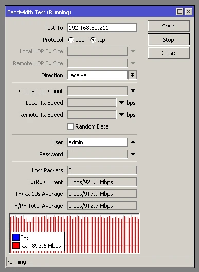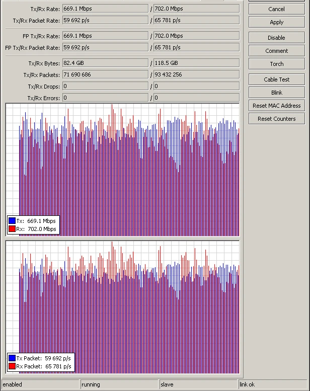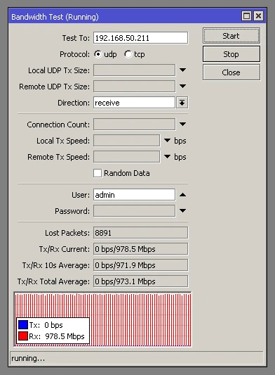 antena). Devido à limitação "de fábrica" da produção em L2 no modo "Layer 2 bridge" a 1,5 Gbps para tráfego UDP, este limite pode ser confirmado em testes: