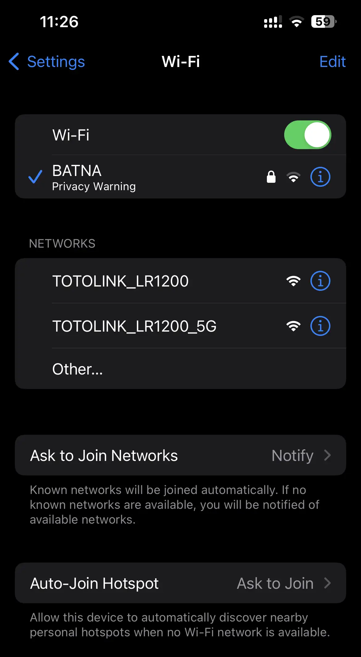 Se pretendermos estabelecer uma ligação sem fios, temos de encontrar a rede"TOTOLINK_LR1200" ou"TOTOLINK_LR1200_5G" na seleção da rede Wi-Fi no dispositivo e ligar simplesmente a uma delas.