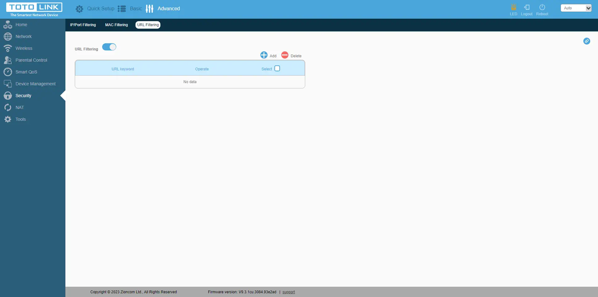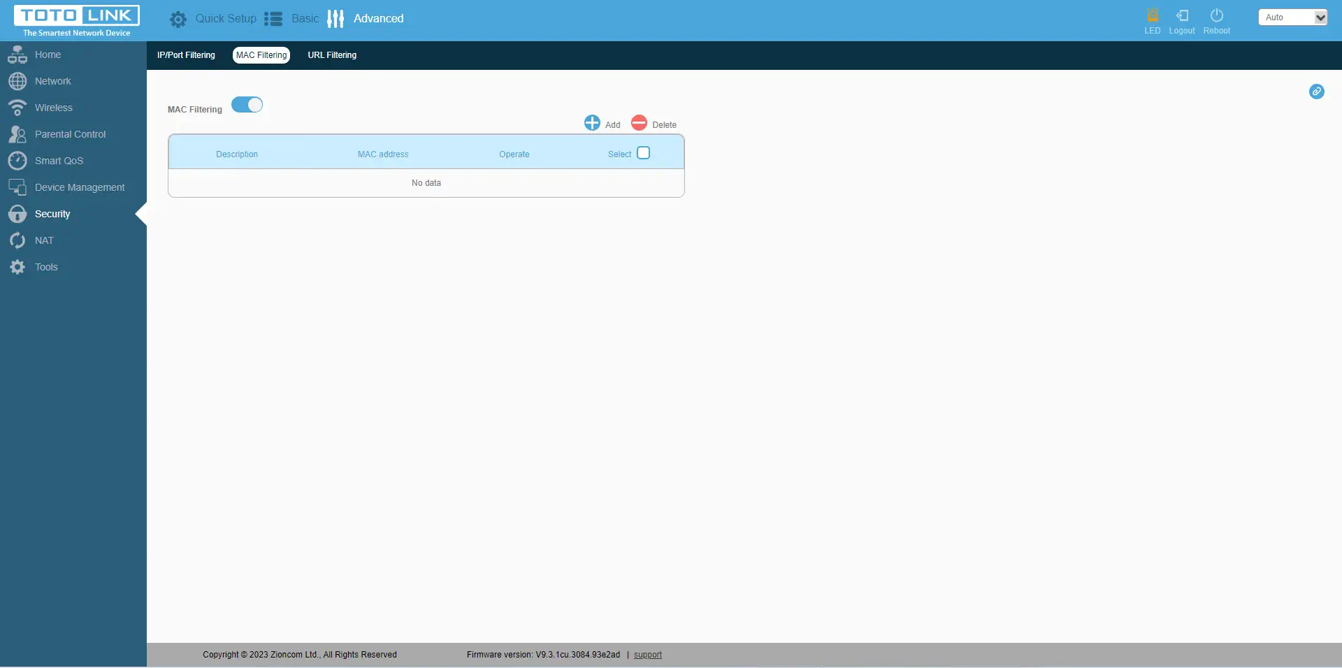 O separador"Segurança" fala por si, e o Totolink LR1200 oferece-nos opções como o bloqueio de endereços IP ou de portas nesses endereços IP, bem como a restrição do acesso pelo endereço MAC do dispositivo e a limitação do acesso a URLs específicos.