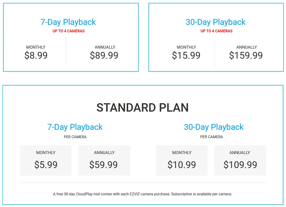 Como outras câmaras WiFi disponíveis no mercado, o EziViz C6TC, oferece-nos a possibilidade de gravar eventos tanto no cartão MicroSD, como a possibilidade de armazenar gravações na nuvem CloudPlay. Infelizmente, mas a versão experimental gratuita é de 7 dias, após este período podemos prolongar a assinatura por mais 23 dias. Infelizmente, após este período, temos de comprar acesso à nuvem. Ao comprar uma câmera, você precisa manter este fato em mente.