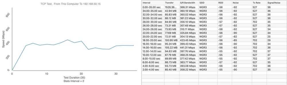 Este é outro teste em uma série de testes de dispositivos sem fio para casa, escritório e indústria. O procedimento de teste escolhido lhe permitirá comparar todos estes dispositivos em condições idênticas e em configuração similar. Para ligações de 2,4GHz, assumimos uma largura máxima de canal de 40MHz. O dispositivo de teste foi MacBook Pro A1502