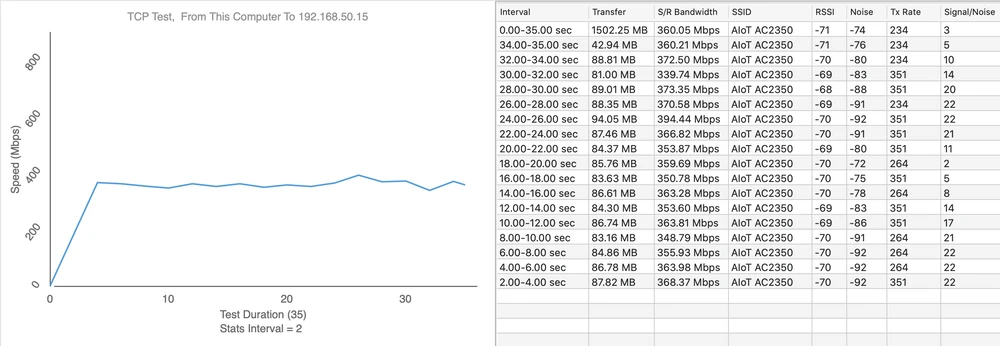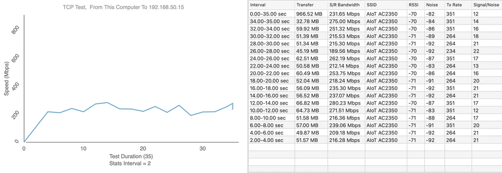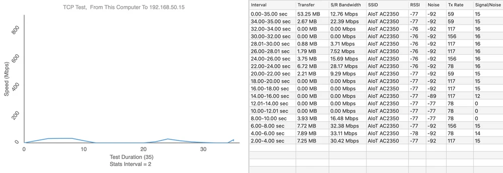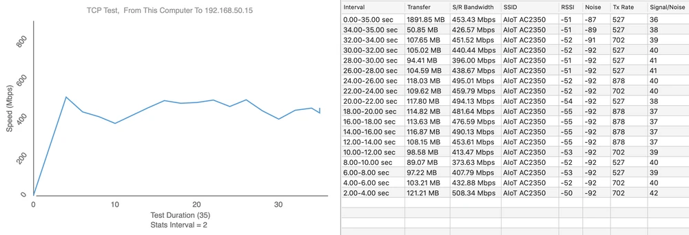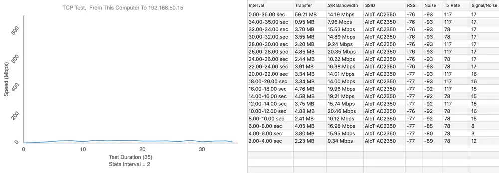 O objectivo dos testes é a verificação da cobertura da rede em termos de cobertura de sinal de todas as divisões, bem como a verificação da velocidade real disponível no edifício. Devido à falta de possibilidade de configurar a largura do canal, no qual o Mi AIoT AC2350 funciona, deve-se assumir que para 2.4GHz é 40MHz, e para 5GHz é 80MHz.