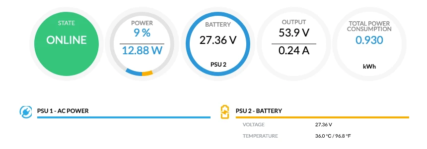 A potência de saída de cada módulo Edge Power (DC, AC) pode fornecer até 150W de potência. Claro, dois módulos dão 300 watts a 54V. Mas tenha em mente que se você usar um módulo AC e um módulo DC, então você só receberá 150 watts porque o segundo módulo é usado para carregar as baterias.