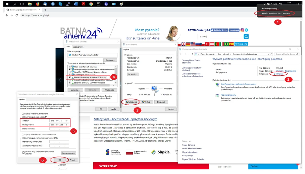 - Ligue o nosso computador à porta LAN do router Totolink 3002ru e defina um endereço IP fixo (192.168.1.10) na placa de rede
