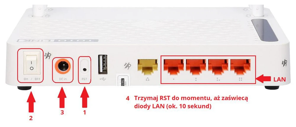 - Uma vez concluída a actualização do router, precisamos de reiniciar o dispositivo para as predefinições, mantendo premido o botão RST durante cerca de 5 segundos.