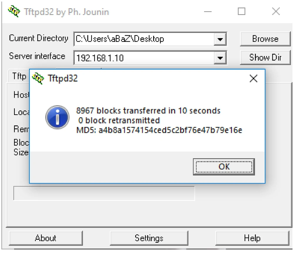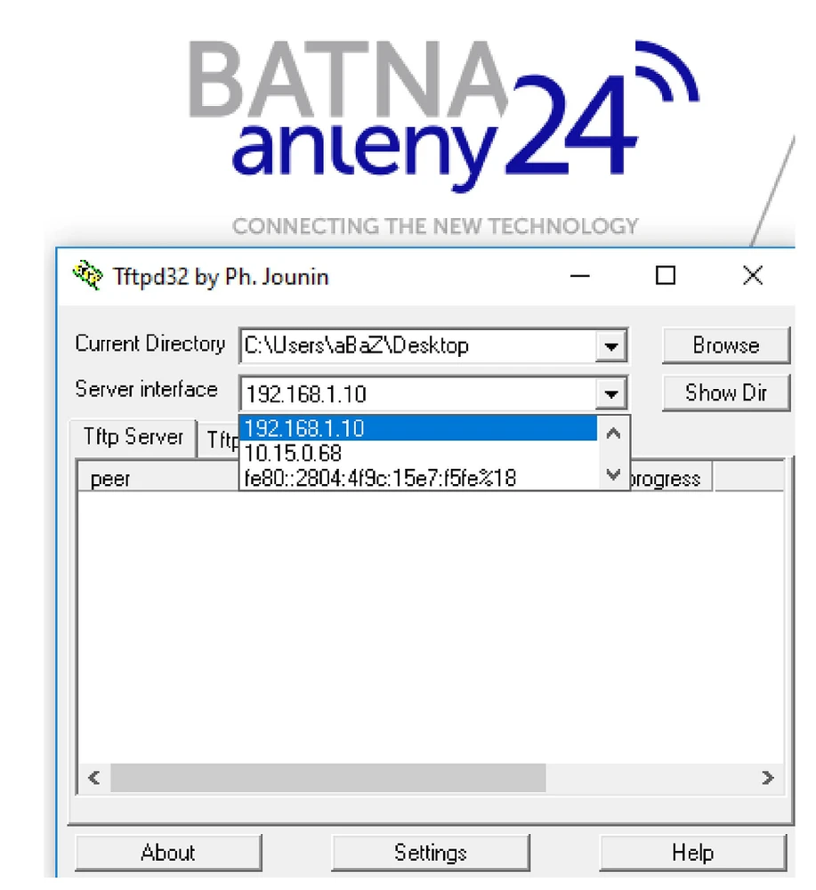 I. O arquivo de software e o arquivo tftpd32.exe devem estar na mesma pasta!