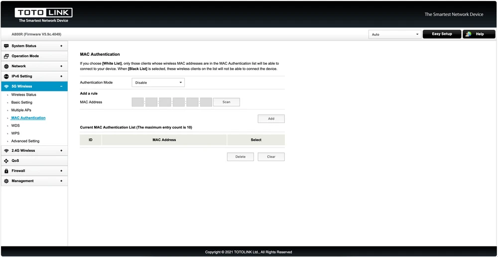 Totolink A800R é um roteador sem fio multifuncional e potente classe AC1200 com suporte total ao padrão Wi-FI 5. O dispositivo funciona com processador RTL819F de 1GHz com chipset RTL8197FN RTL8812BR e 64 MB de RAM. Esta configuração é uma melhoria significativa em relação aos modelos Totolink anteriores. Além disso, o A800R está equipado com 4 portas LAN e 1 porta WAN. Infelizmente, deve ser enfatizado que a velocidade dos portos é de apenas 100 MB/s, embora no caso do espaço residencial, tal transmissão de dados seja totalmente aceitável.