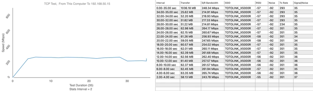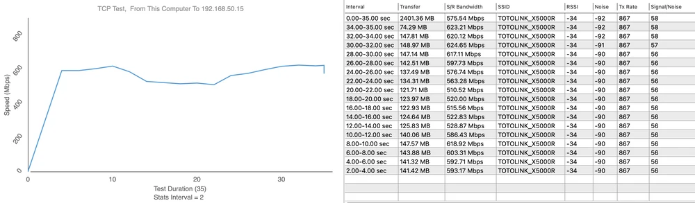 Nós usamos o software AirSurvey para fazer um mapa de sinais. Para uma leitura correcta dos níveis de sinal, preste atenção à legenda colorida na parte inferior da imagem. A localização dos accessspoints é marcada com um ícone.X5000R teste de velocidade