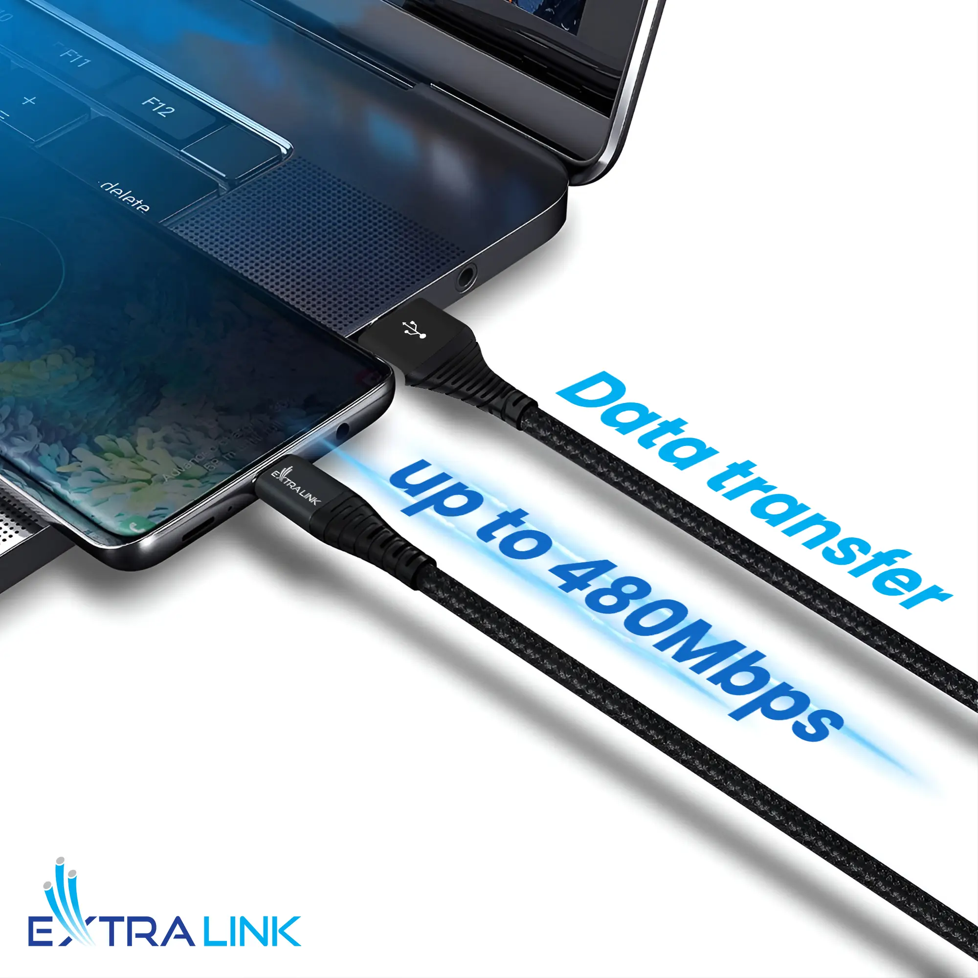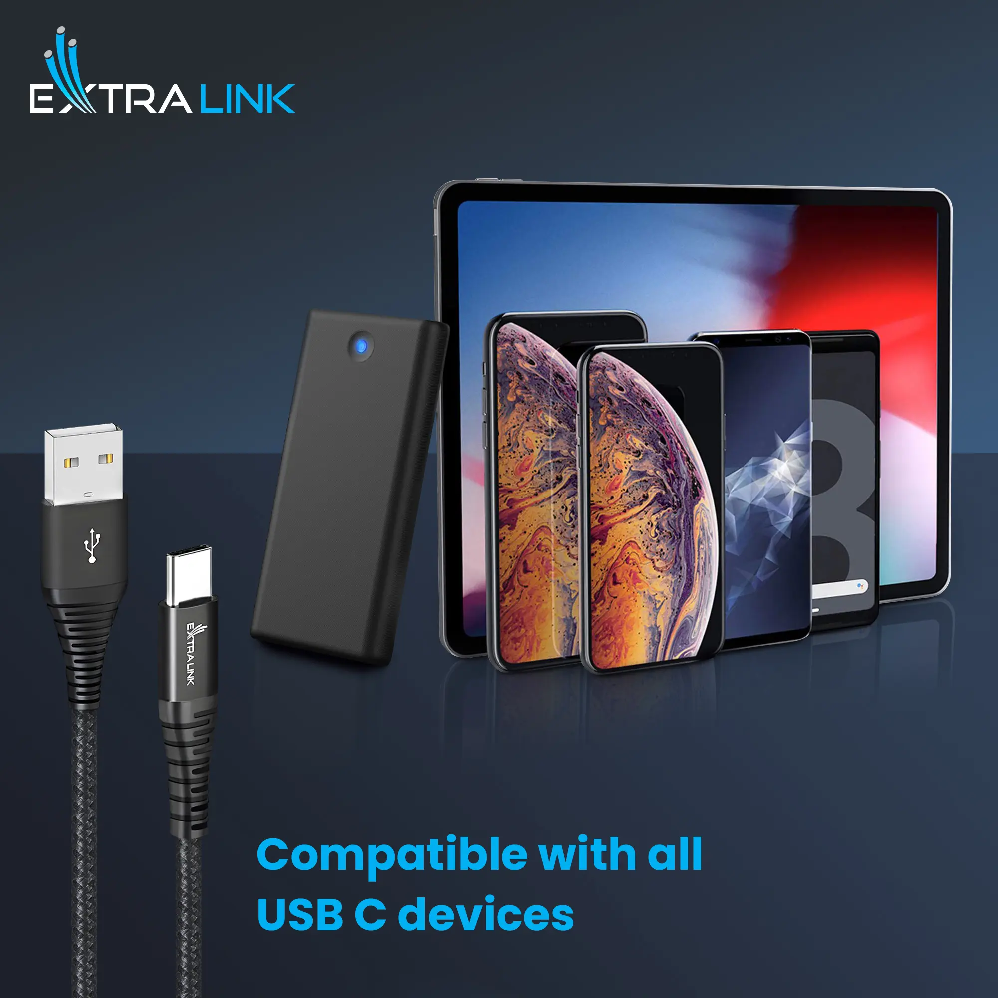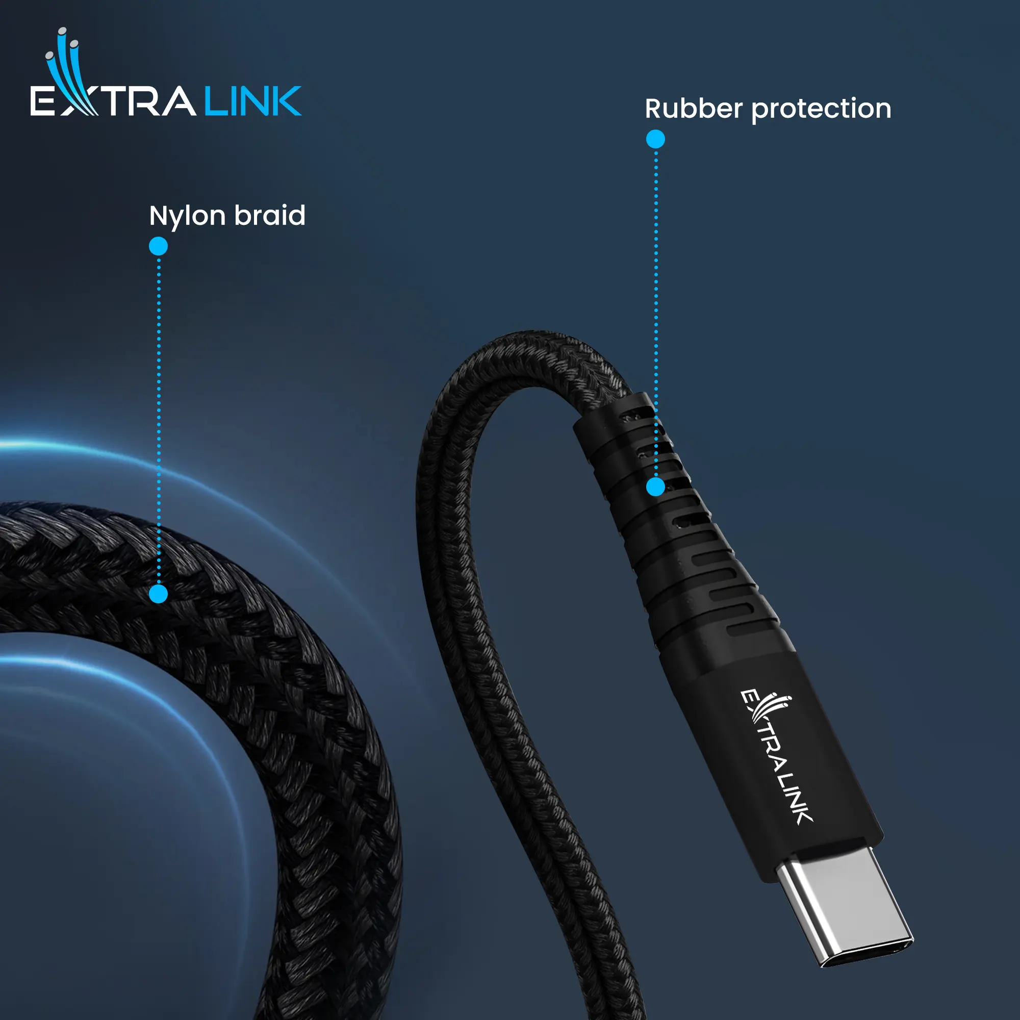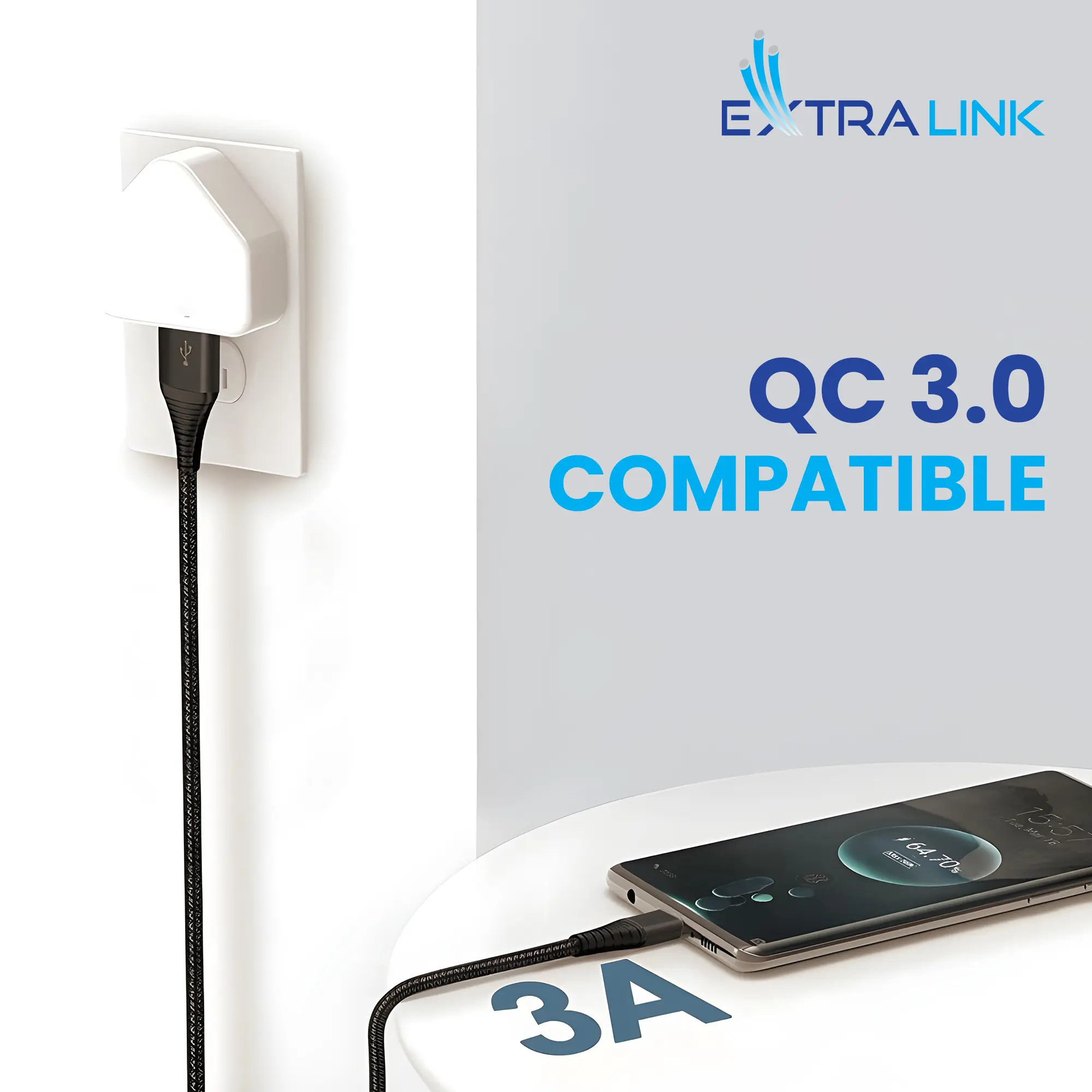 Extralink Smart Life Braided 15W USB Type-A to Type-C 2m Preto | Cabo USB | 5V 3A