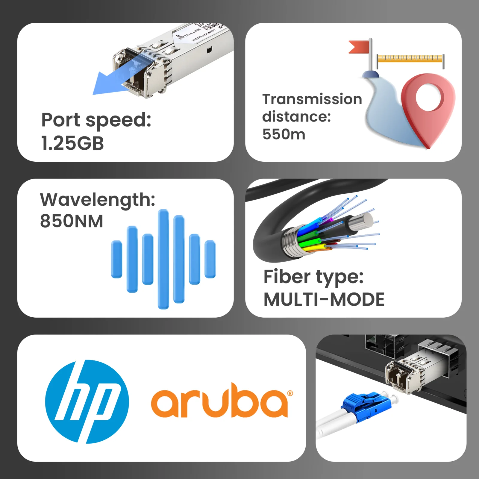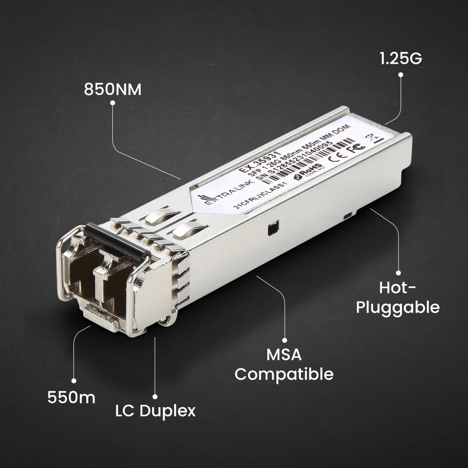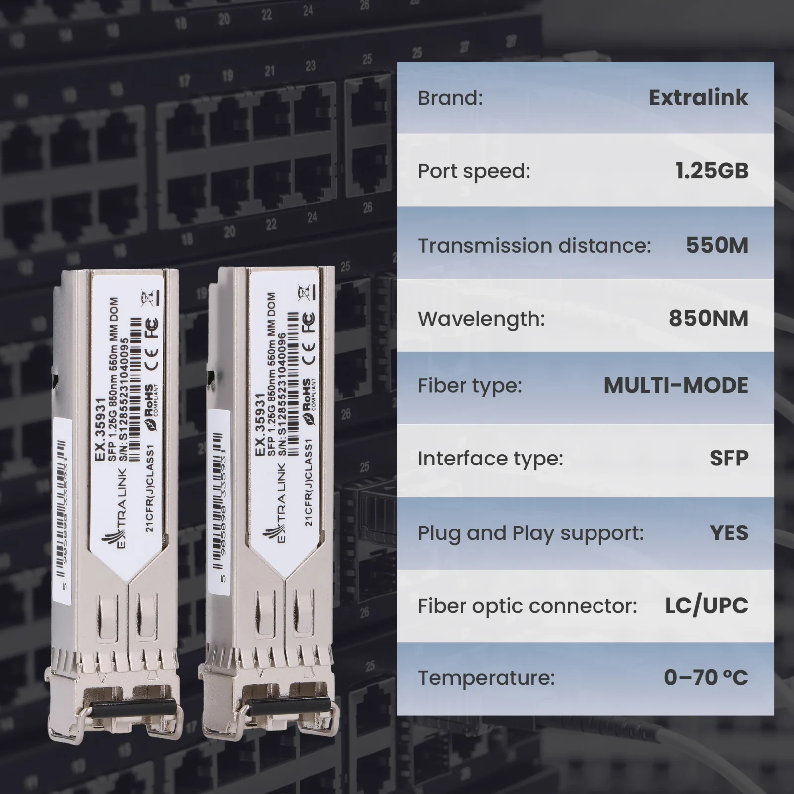 Extralink SFP 1.25G 2-pack | SFP Módulo | 1,25Gbps, LC/UPC, 850nm, 550m, multi mode, DOM, Dedicated to HP/Aruba