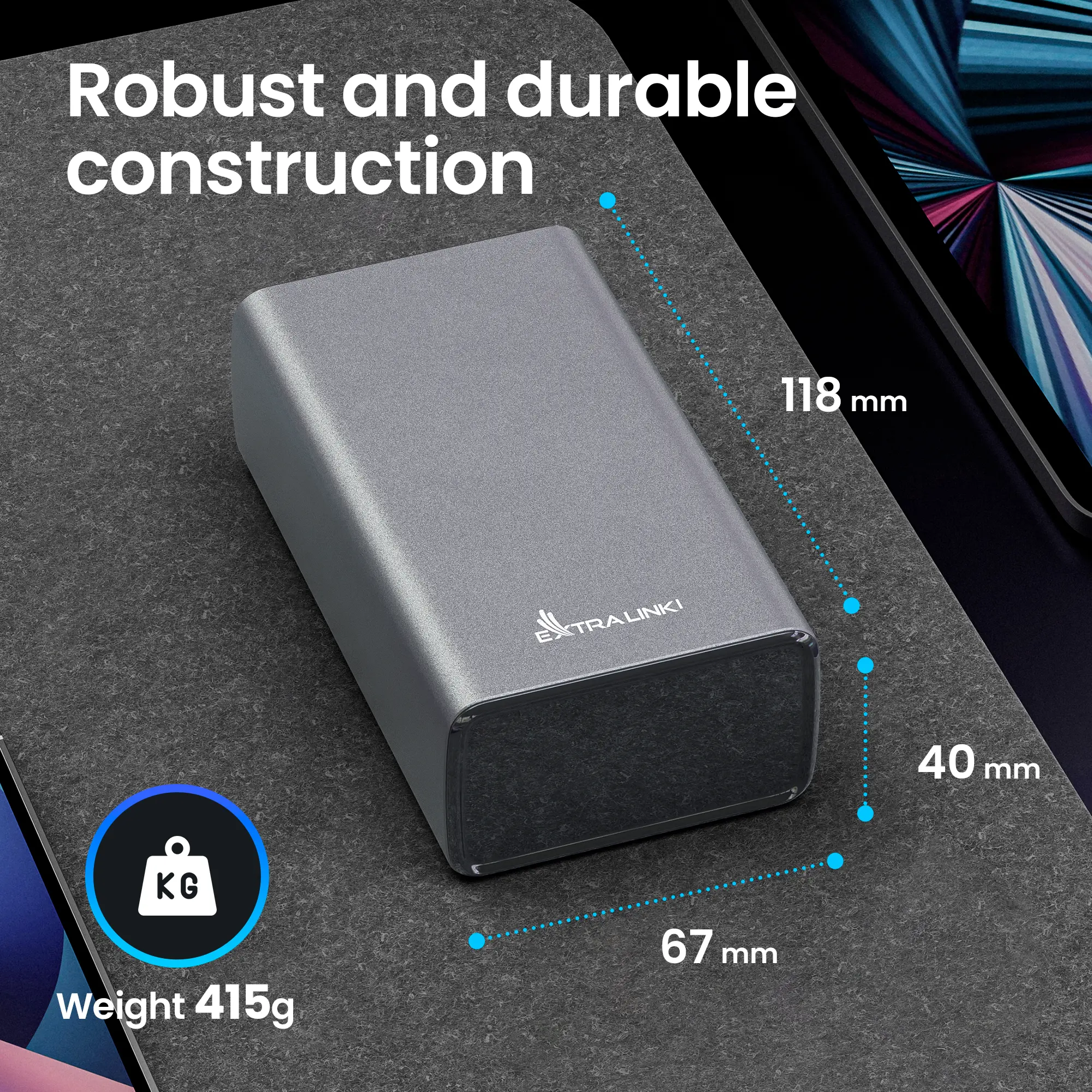 O banco de energia Extralink EPB-068 suporta a funcionalidade Fast Charge de até 22,5 W através de uma única porta. A alta capacidade de 20000 mAh é suficiente para carregar um dispositivo várias vezes, satisfazendo as necessidades energéticas do dia inteiro.
