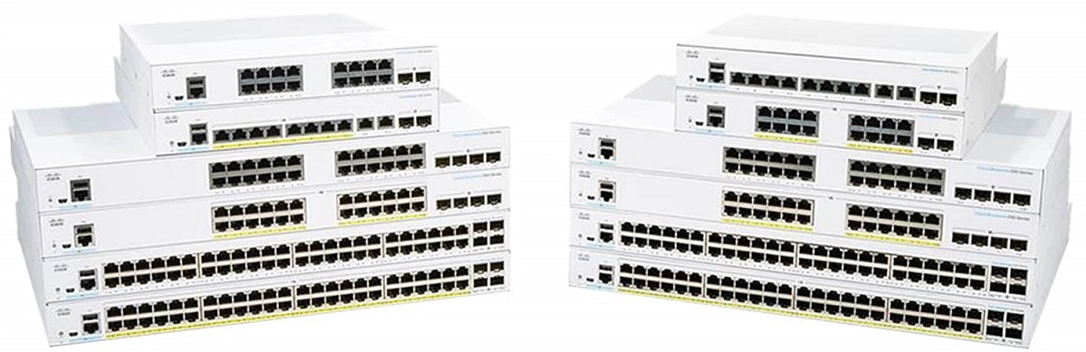ACISCO CBS350-48T-4X 24-PORT tem 48 portas Gigabit Ethernet e 4 portas SFP 10G . Taxa de transferência total de 176 Gbps.