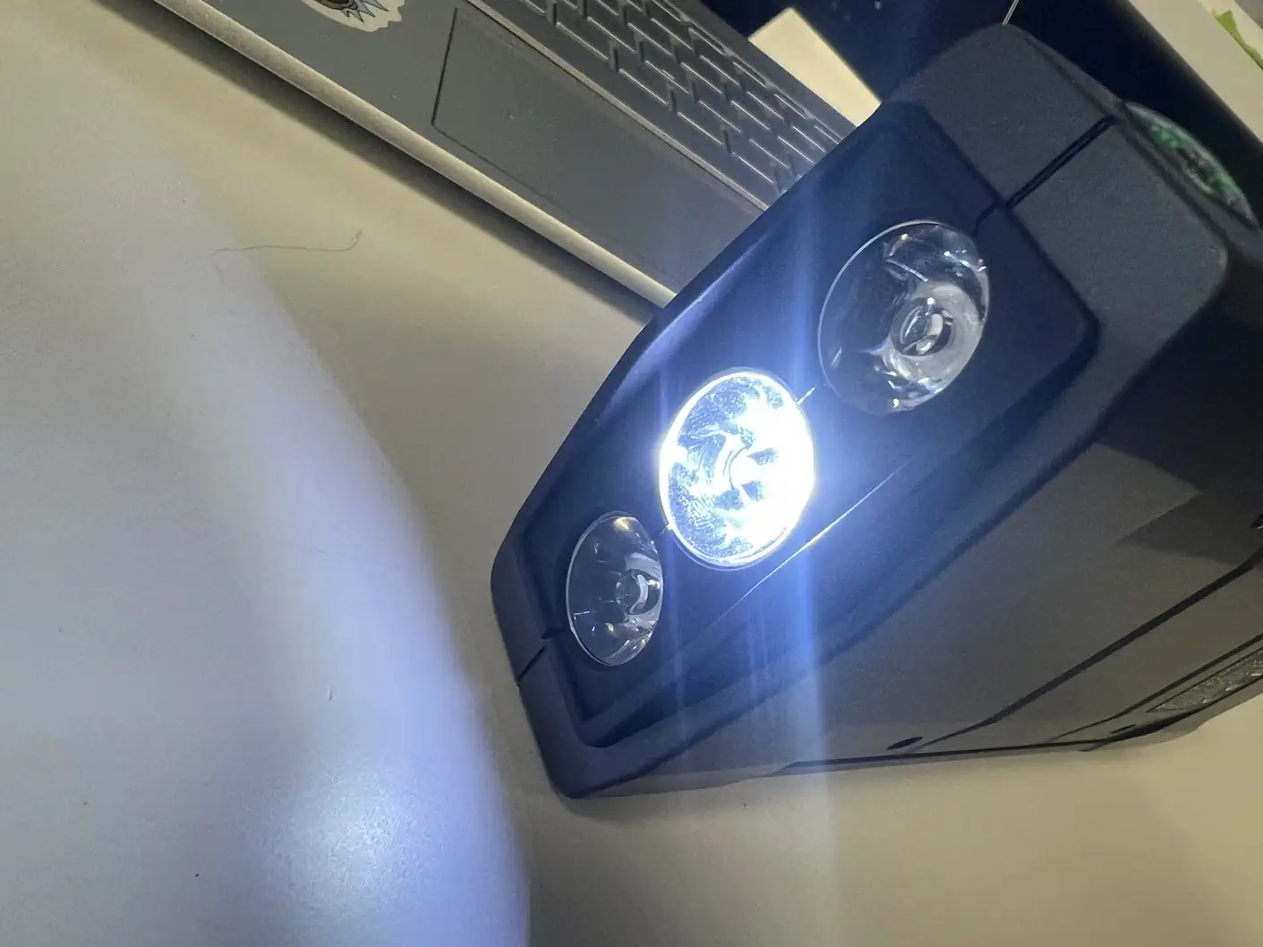 На передней панели имеется встроенный металлический "молоток", который отлично подходит для разбивания окон в чрезвычайных ситуациях. На другой стороне устройства расположены 3 ярких светодиода, которые могут работать в разных режимах.