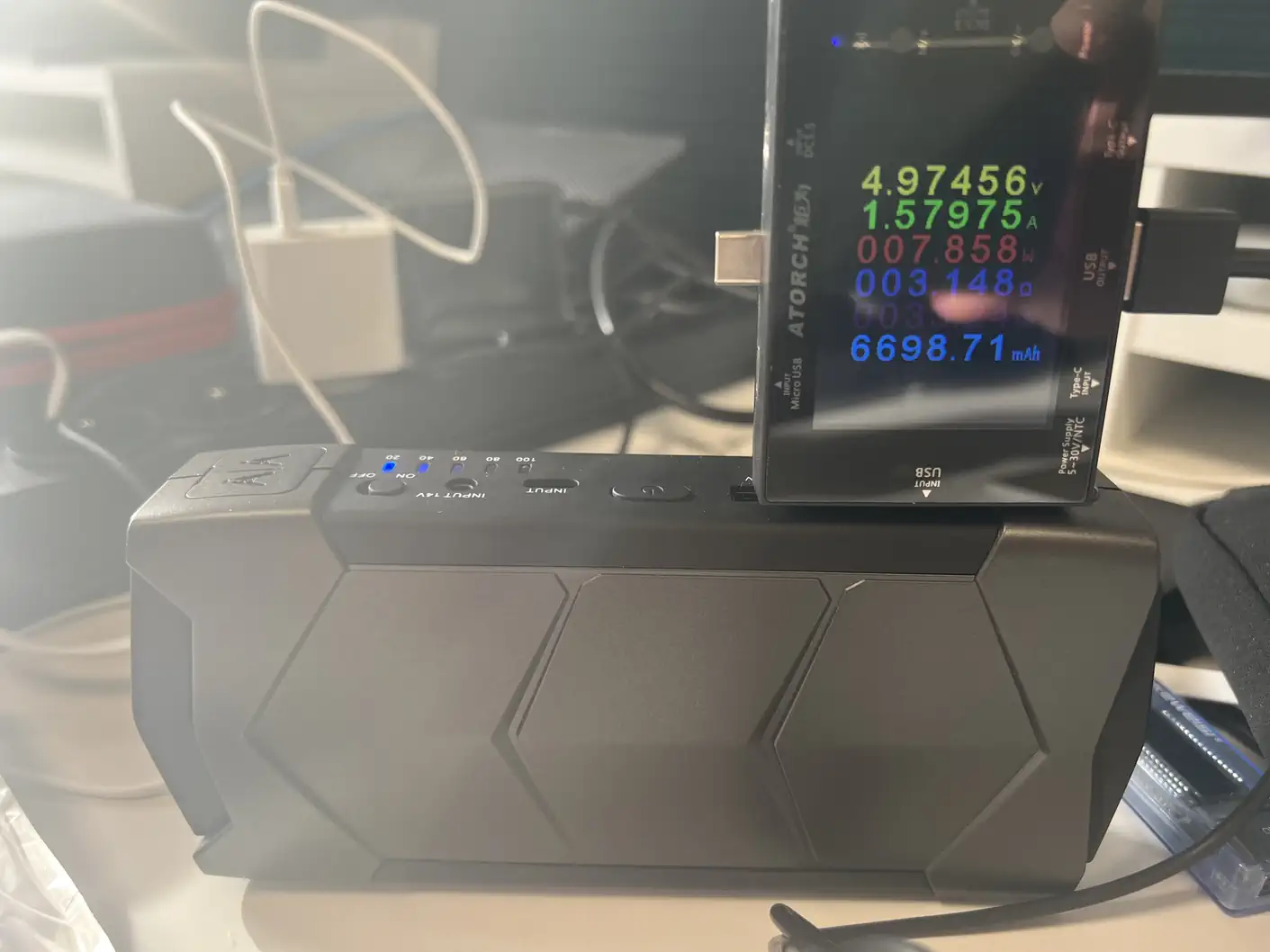 Следующее, что мы сделали, это полностью разрядили power bank и проверили, сколько энергии и емкости он имеет.