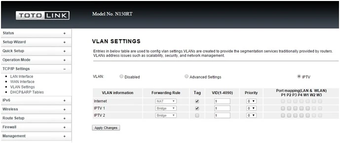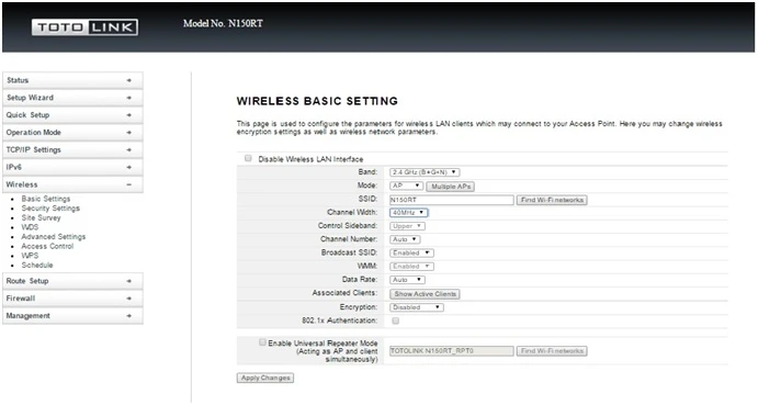 Интерфейс маршрутизатора TOTOLINK N150RT Интерфейс маршрутизатора, несмотря на то, что не имеет польской языковой версии, очень удобен в использовании, так как интуитивно разделен и позволяет ввести множество расширенных настроек без лишних блужданий и поисков определенных разделов расширенной конфигурации и необходимости постоянного перезапуска маршрутизатора для утверждения введенных настроек.