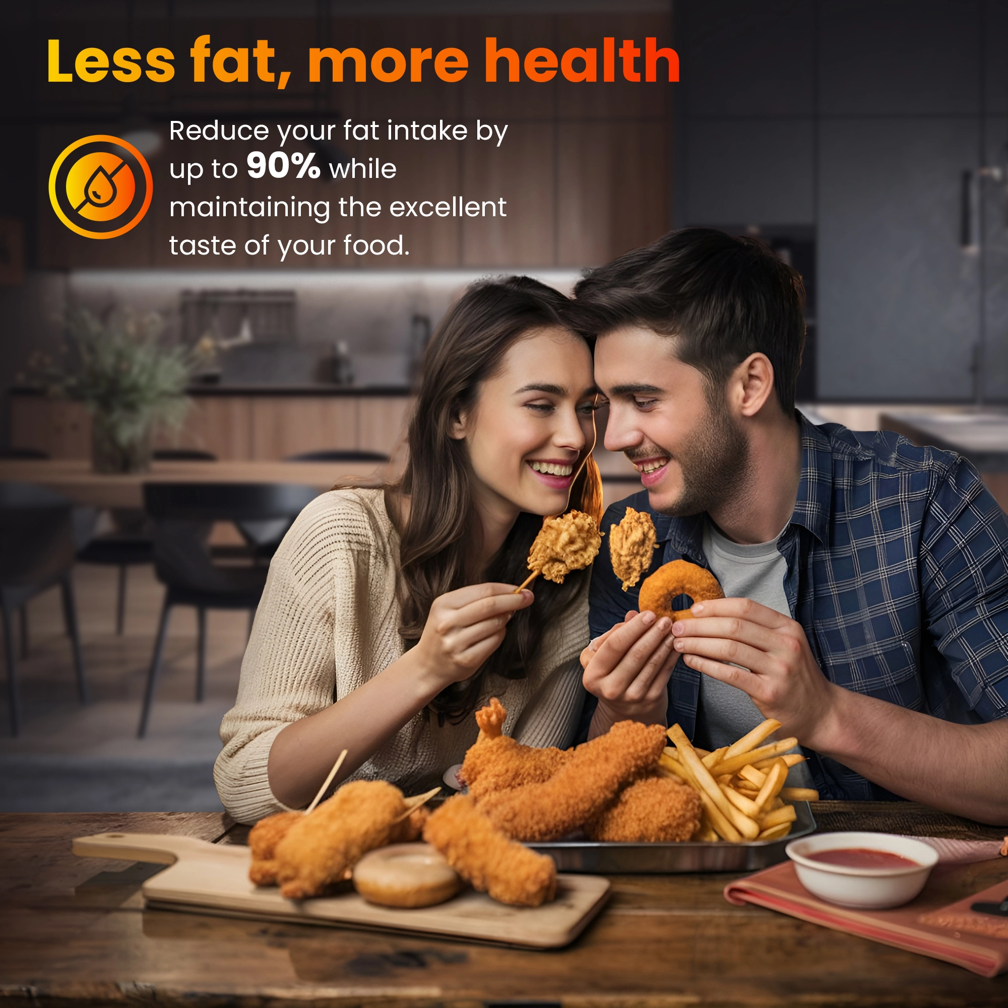Сокращение количества жира до 90% означает уменьшение количества калорий и, следовательно, более здоровое питание для вашей семьи. Наша фритюрница XXL без жира - прекрасная альтернатива традиционной жарке, помогающая сохранить питательную ценность и вкус ваших блюд. Это инвестиция в здоровье ваших близких без ущерба для удовольствия от еды.