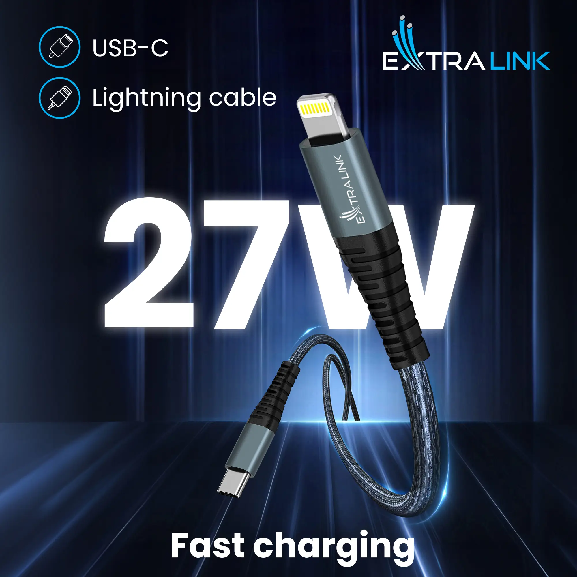 Кабель USB-C на Lightning Extralink Smart Life Черный, 100см