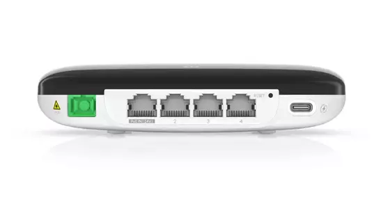 UF WiFi6 имеет 4 порта LAN RJ45 GbE и 1 порт WAN GPON для подключения локальной оптоволоконной линии.