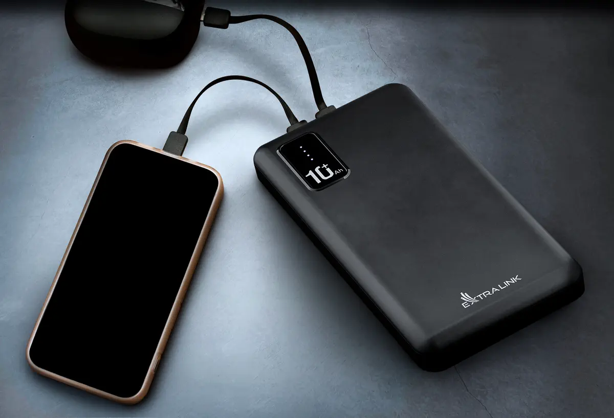 Power bank Extralink Емкость аккумулятора EPB-098B составляет 10000 мАч, что достаточно для многократной зарядки смартфона или планшета.