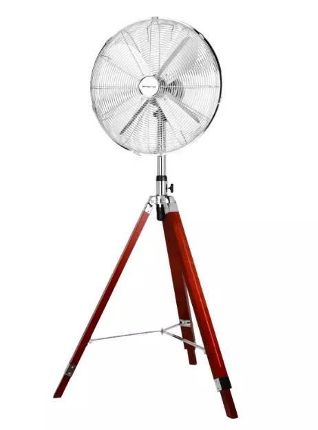 Ретро-вентилятор с деревянной подставкой и 4 лопастями. Цвет, украшающий вентилятор, - сосновое дерево, а аксессуары - хромированные. При использовании на полную мощность мощность устройства достигает 50 Вт.