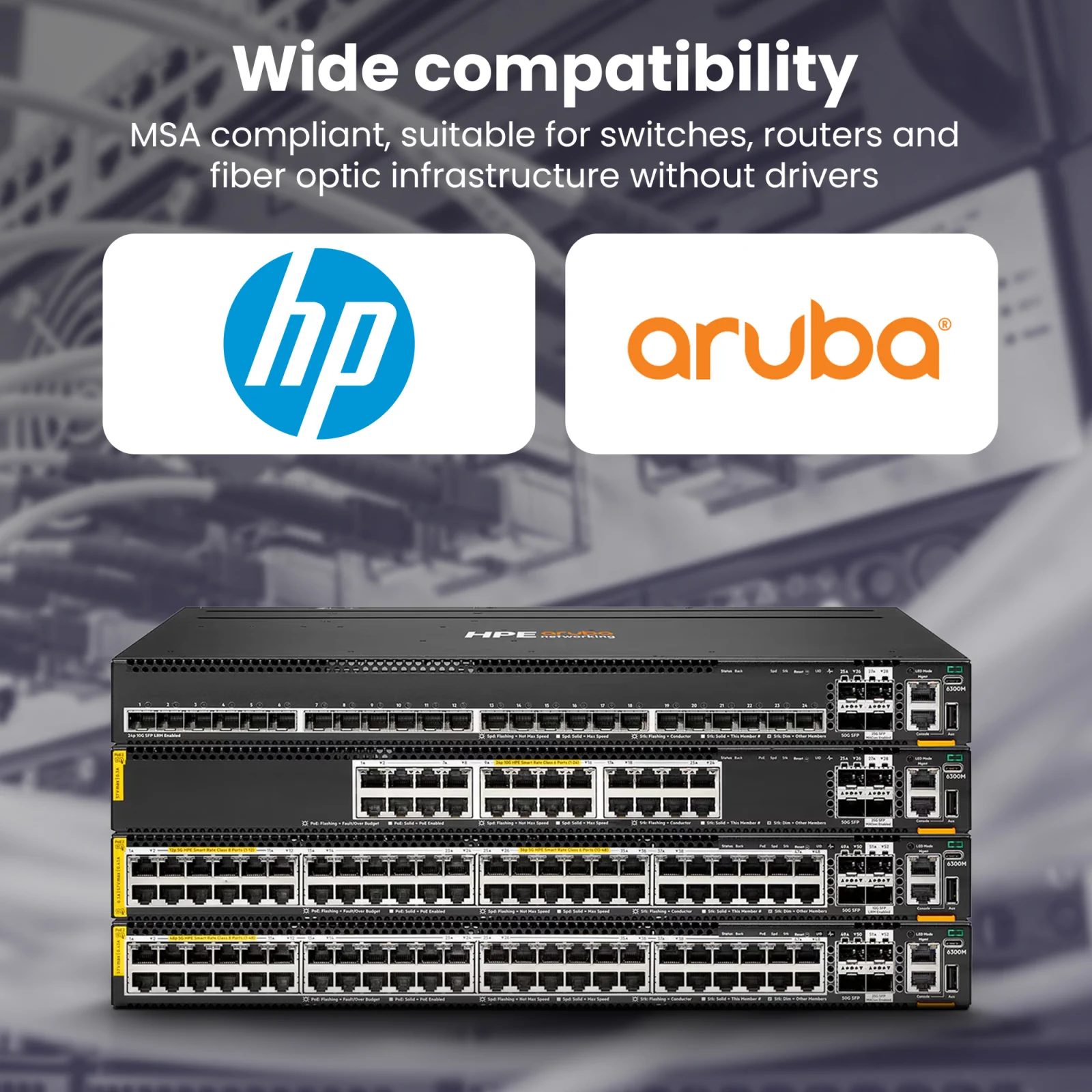 Extralink SFP 1.25G, 1.25 Gbps veri hızını destekleyen ve 20 km'ye kadar iletim menzili sunan yüksek performanslı, ekonomik, tek modlu bir fiber optik SFP modülleridir. DOM (DDM) teknolojisi, kullanıcının optik G/Ç gücü, sıcaklık, lazer öngerilim akımı ve besleme gerilimi gibi SFP parametrelerini gerçek zamanlı olarak izlemesini sağlar. HP / Aruba'ya adanmıştır.
