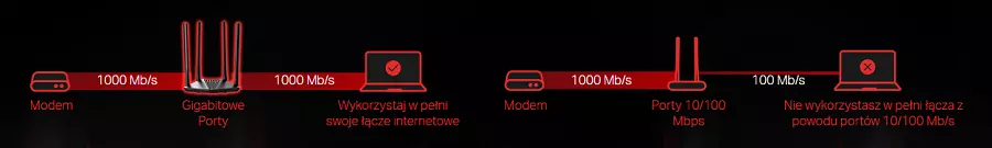 Hızlı Ethernet bağlantı noktalarından 10 kat daha hızlı olan gigabit bağlantı noktaları ile MR30G, verileri inanılmaz hızlarda iletir. Potansiyelini gerçekleştirmek için bilgisayarlarınızı, IPTV cihazlarınızı ve konsollarınızı MR30G'ye bağlayın.